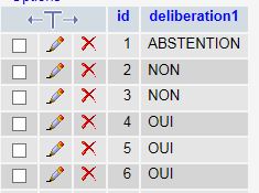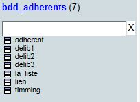 3 tables dénommées délibération 1, 2 3 qui contiennent les réponses aux 3 questions de toute assemblée Générale Associative. Aucun lien entre les réponses et le fichiers des adhérents |