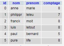 Ce sont les noms prénoms des membres sortants ou à renouveler et comptage de votes reçus. |
