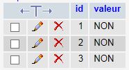 Table de travail qui contient 3 lignes pour 2 valeurs qui peuvent être OUI / NON |